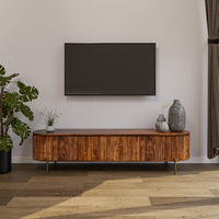 Prosta szafka RTV pod telewizor z naturalnego drewna Mango na skośnych nóżkach ST-23-MN