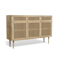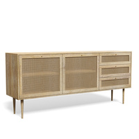 Drewniana szafka RTV z drewna mango i plecionki wiedeńskiej w stylu Boho.VN-07-MN
