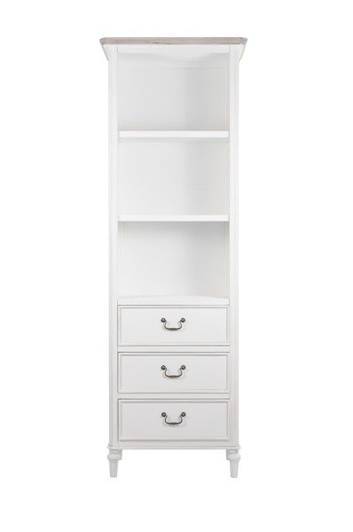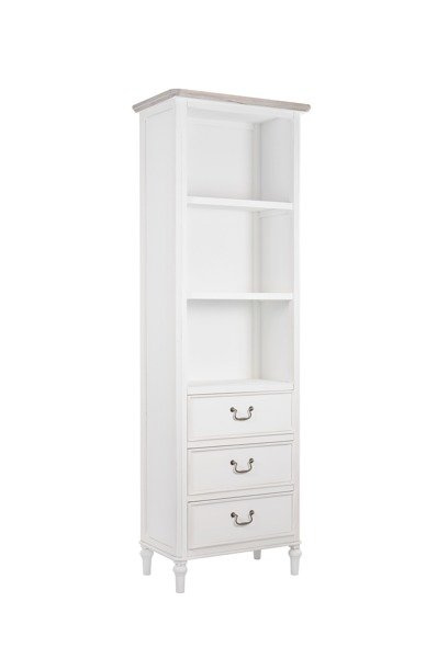 - Biały, wąski regał to kwintesencja dawnego, francuskiego stylu. Romantyczny i przytulny mebel do przechowywania i eksponowania wartościowych przedmiotów. Pięknie będzie wyglądać w jadalni, kuchni czy salonie urządzonym w stylu prowansalskim i shabby chic.