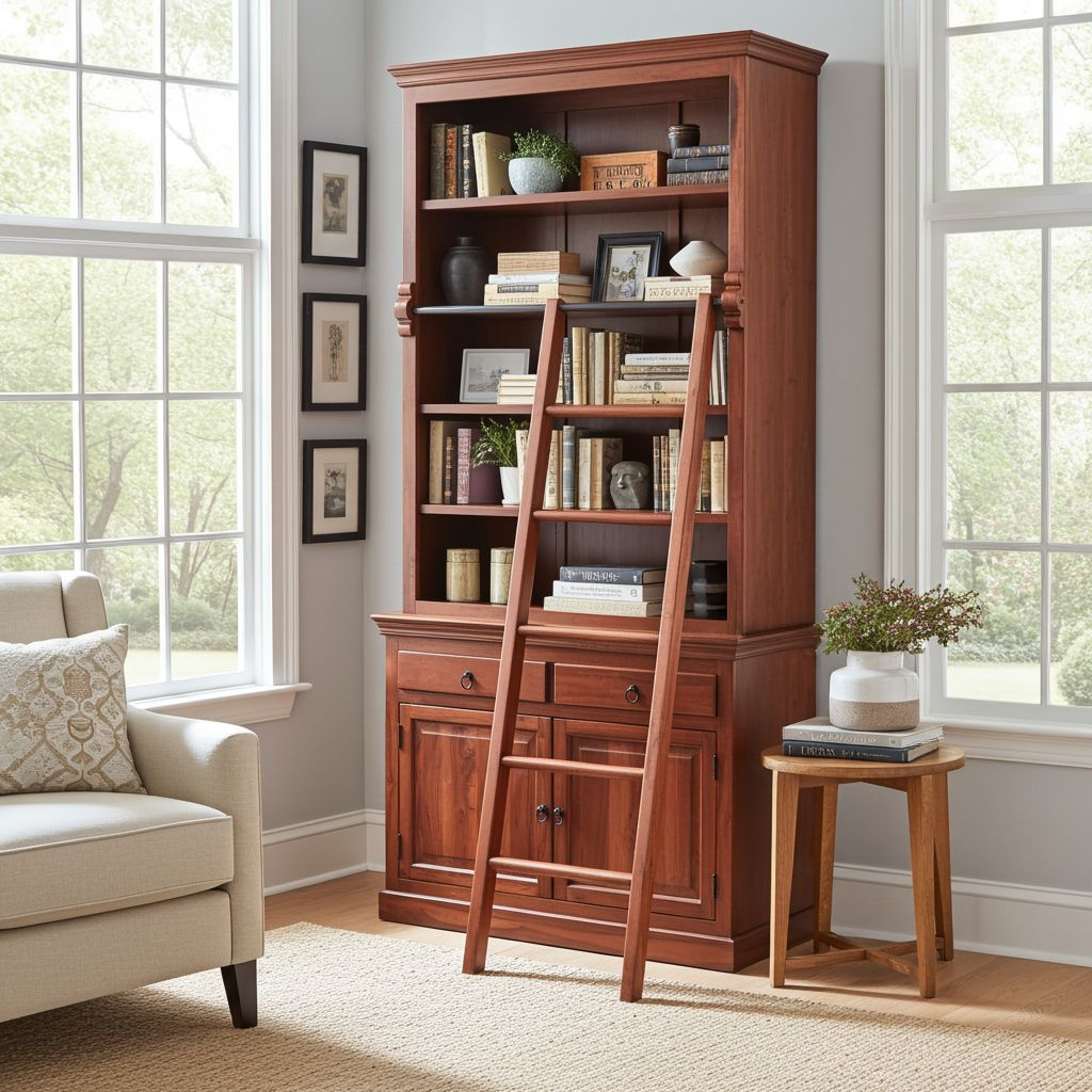 Biblioteka z drewna palisandru z drabinką – ręcznie wykonana przez indyjskich rzemieślników