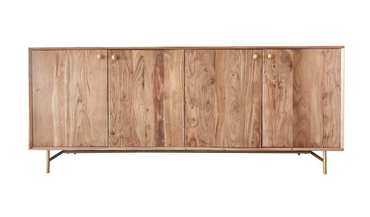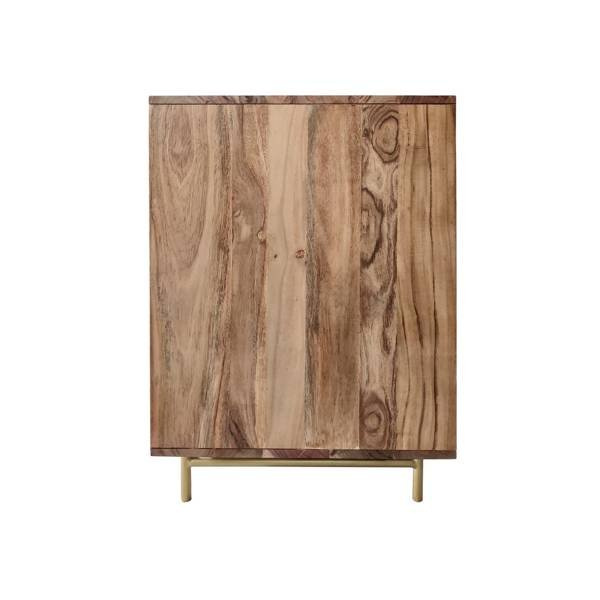 - Niezwykle efektowna, duża komoda z półkami zaprojektowana w stylu industrialnym. Doskonały mebel do przechowywania większych przedmiotów. Metalowe, złote nogi i uchwyty sprawdzą się w aranżacjach industrialnych, boho bądź retro.