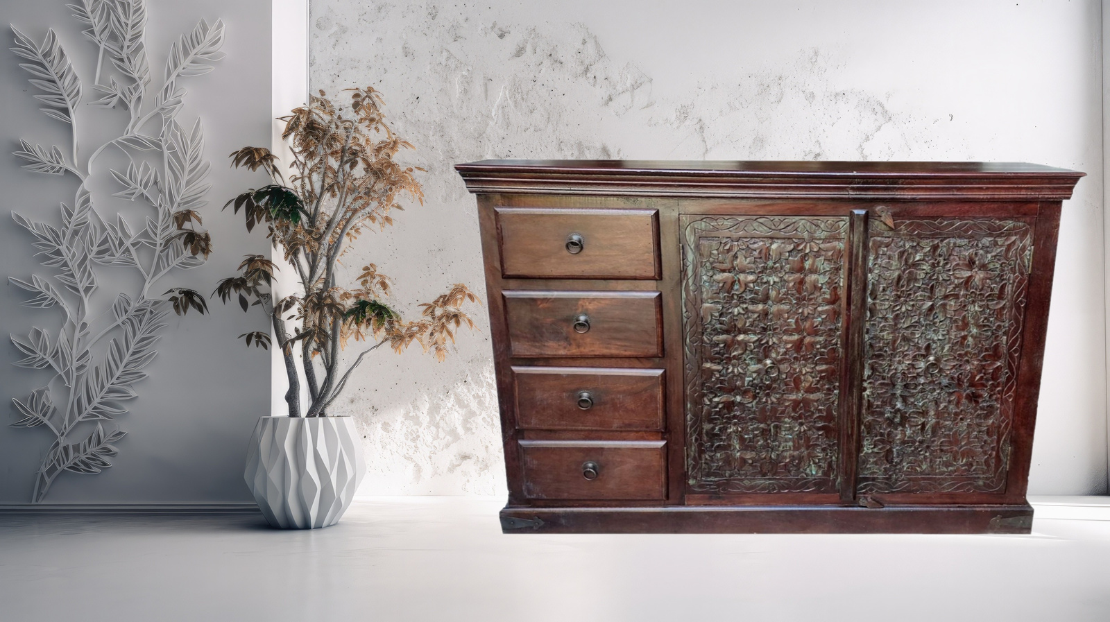 - Komoda z drewna mango ,rzeźbiona WCDS-4-140-MN .