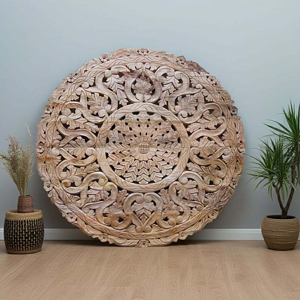 Wnieś do swojego wnętrza nutę egzotyki i sztuki rzemieślniczej dzięki temu wyjątkowemu panelowi dekoracyjnemu. Każdy egzemplarz powstaje w Indiach, gdzie utalentowani artyści ręcznie rzeźbią w solidnym drewnie mango misterny, ażurowy wzór inspirowany tradycyjnymi motywami roślinnymi.