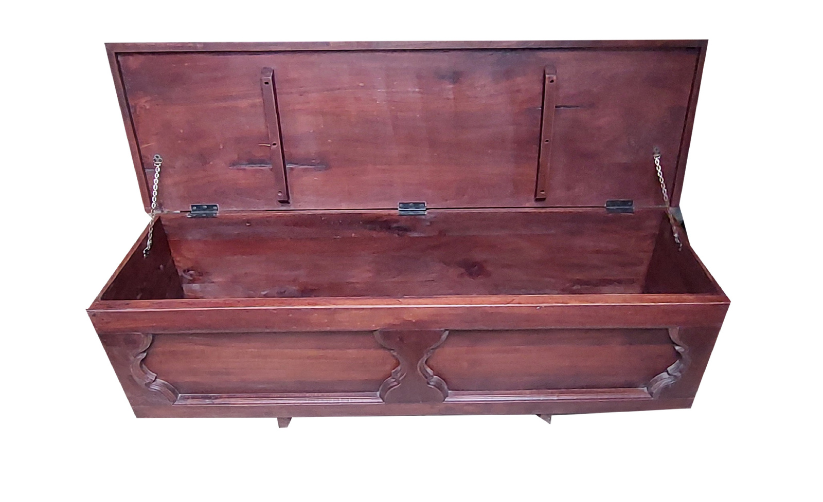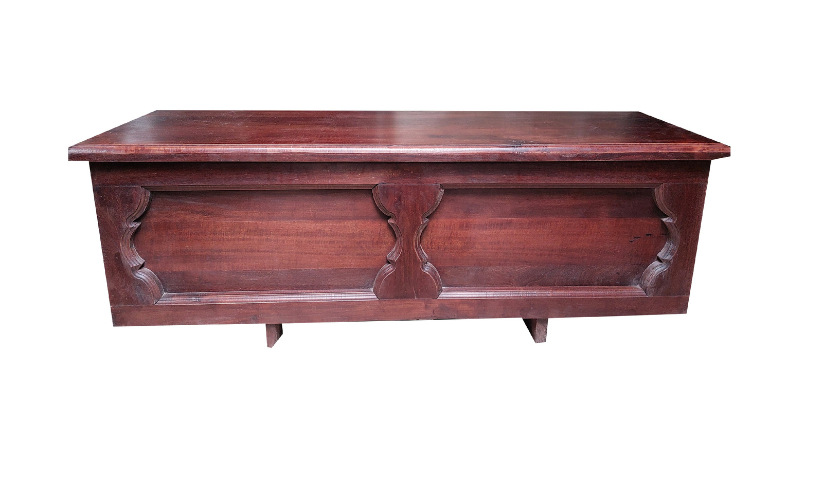 Opis mebla: Skrzynia wykonana z egzotycznego drewna mango, która pełni również funkcję stolika kawowego. Drewno mango jest znane ze swojej trwałości i egzotycznych wzorów słojów. Skrzynia ma płaską górną powierzchnię, która może służyć jako stolik do kawy. Drewno ma różne naturalne odcienie i wzory, co podkreśla unikalne cechy drewna mango. To mebel, który może zainteresować osoby poszukujące wielofunkcyjnych, dekoracyjnych przedmiotów, które jednocześnie pełnią funkcję przechowywania, a egzotyczny charakter drewna mango dodaje mu wyjątkowego uroku.