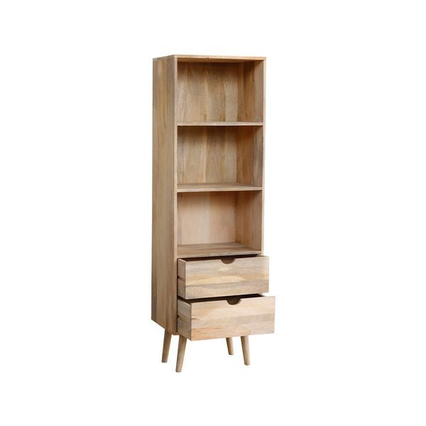- Wąski regał, biblioteczka wykonany z naturalnego drewna Mango to ponadczasowy, wszechstronny mebel doskonale pasujący do salonu, biura i praktycznie każdego pomieszczenia urządzonego w stylu skandynawskim. Prostota i elegancja w jednym meblu.
